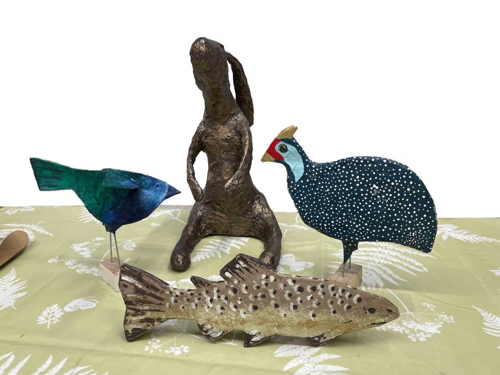 Meanwhile, our Art Club Sculpture Course throughout May worked through a variety of papier mache methods to create a colourful and characterful selection of creatures for house and garden. Here are some of the results: