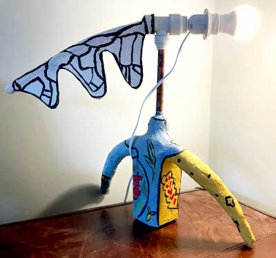 This is a four week course where we will aim to make a lamp base in the shape of a sculpture. We will use waste materials and papier mache to form the sculpture and a commercial lighting kit to house the lightbulb (and lampshade if you require).